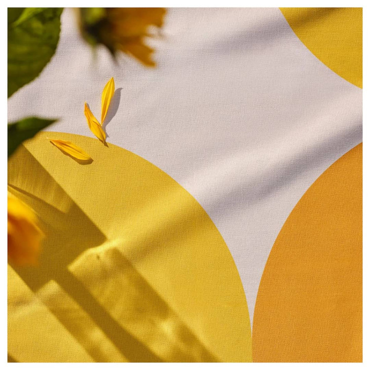 با این رومیزی، که نقطههای رنگارنگ آن از رنگهای زرد طلایی خورشید الهام گرفته شدهاند، اجازه دهید تابستان جای خود را روی میز داشته باشد.