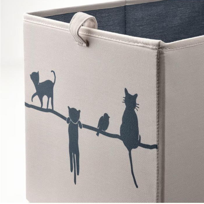 این جعبه بزرگ از 100% پلی استر ساخته شده است . یک طرف آن طرح گربه ها و یک طرف آن طرح درخت وجود دارد..