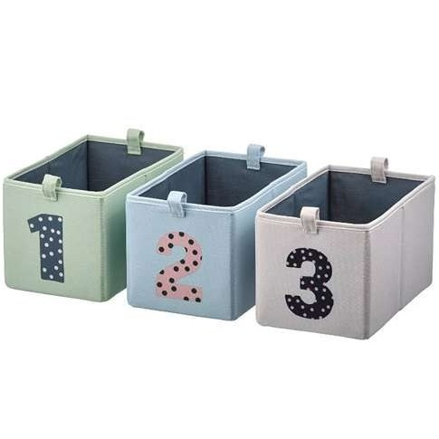 این ۳ جعبه به کودک شما کمک میکند تا ضمن یادگیری تشخیص اعداد و شمارش از ۱ تا ۶، منظم بماند و وسایلش را پیدا کند. ساخته شده از ۱۰۰٪ پلیاستر بازیافتی و بادوام.
