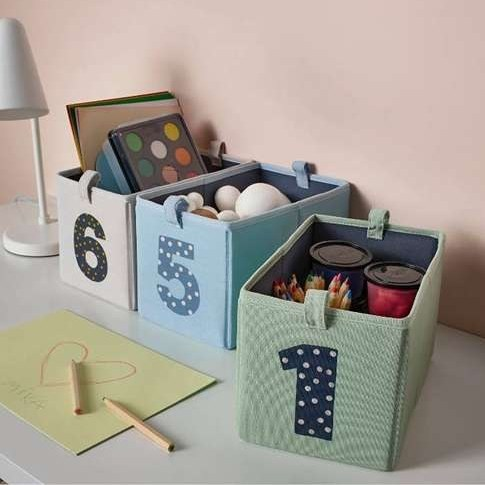 این ۳ جعبه به کودک شما کمک میکند تا ضمن یادگیری تشخیص اعداد و شمارش از ۱ تا ۶، منظم بماند و وسایلش را پیدا کند. ساخته شده از ۱۰۰٪ پلیاستر بازیافتی و بادوام.